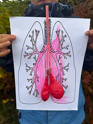 Anschaulich unterstützt dann auch eine Luftballon-Lunge, wie ein- und ausgeatmet wird.